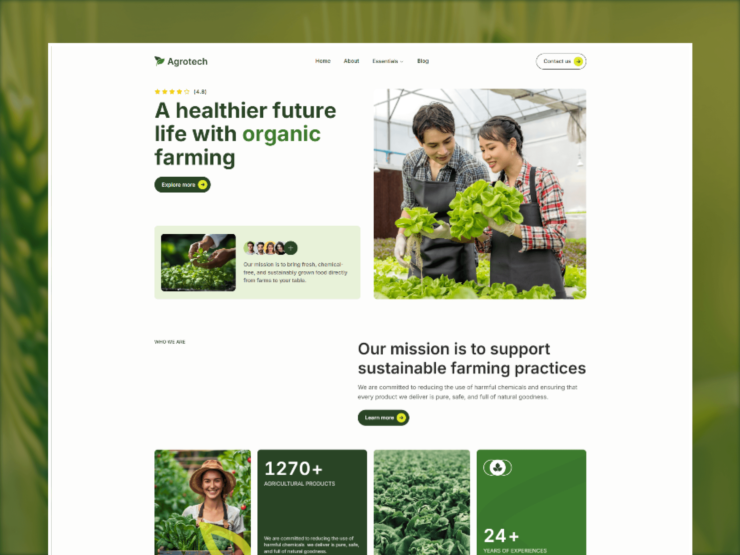 AgroTecx is a modern and eco-friendly Framer template designed for farms, agricultural businesses, and organic product companies. With clean layouts, CMS-powered pages, and responsive design, it helps you showcase your produce and promote sustainability.