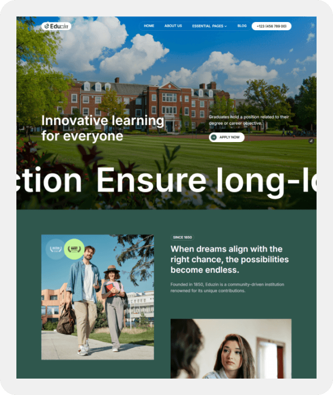 Designed to support your institution’s growth, EduZin features CMS-driven content, customizable layouts, and seamless integrations. From admissions to research highlights, this template makes it effortless to communicate your mission and attract prospective students.