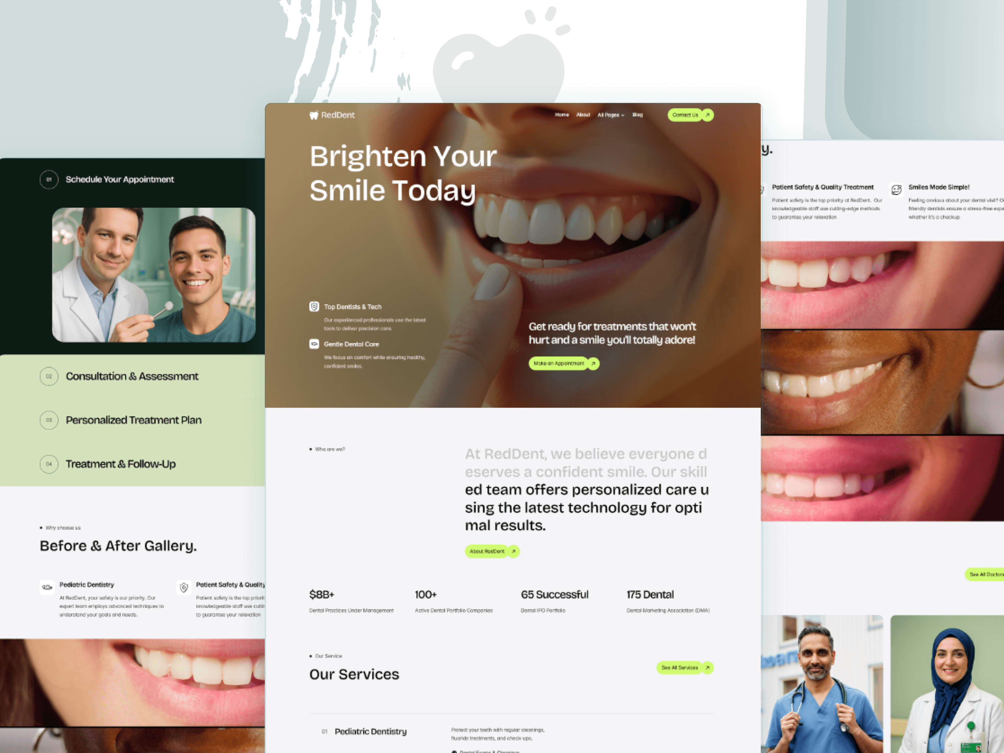 Service pages dedicated to treatments like orthodontics, cosmetic dentistry, and oral care